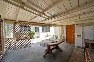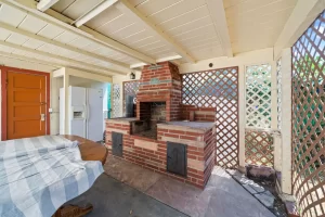 Every home in this gated community has large grassy front yards, including this property which is on an 8,456 square foot lot. It has a 2-car detached garage at the back of the lot with an office or work area and a covered patio with an outdoor fireplace.
