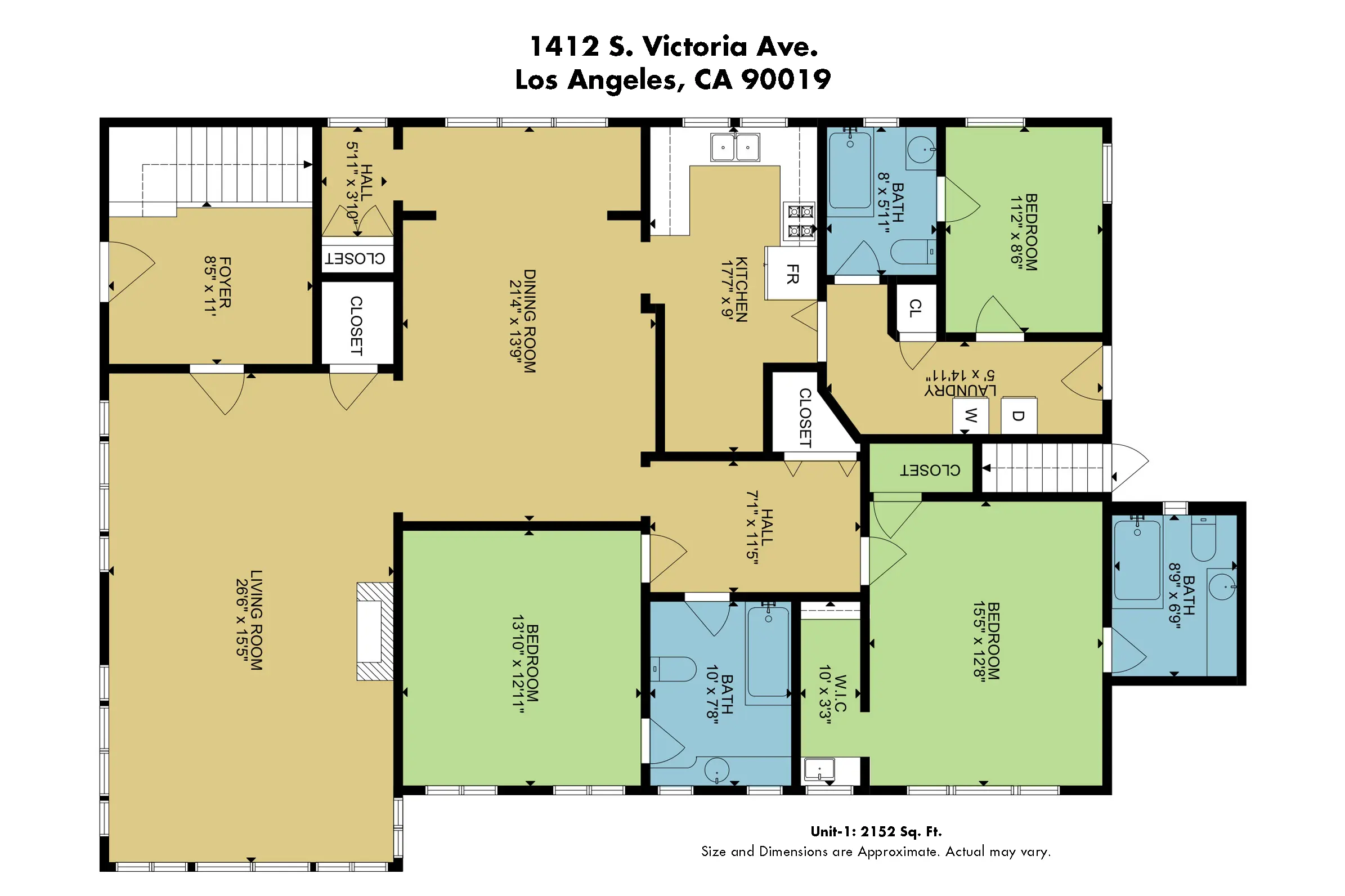 Unit #1 Downstairs Unit is 3-bedrooms and 2.5-baths approximately is 2152 square feet, with family room and a living room hardwood floors and with a fireplace.