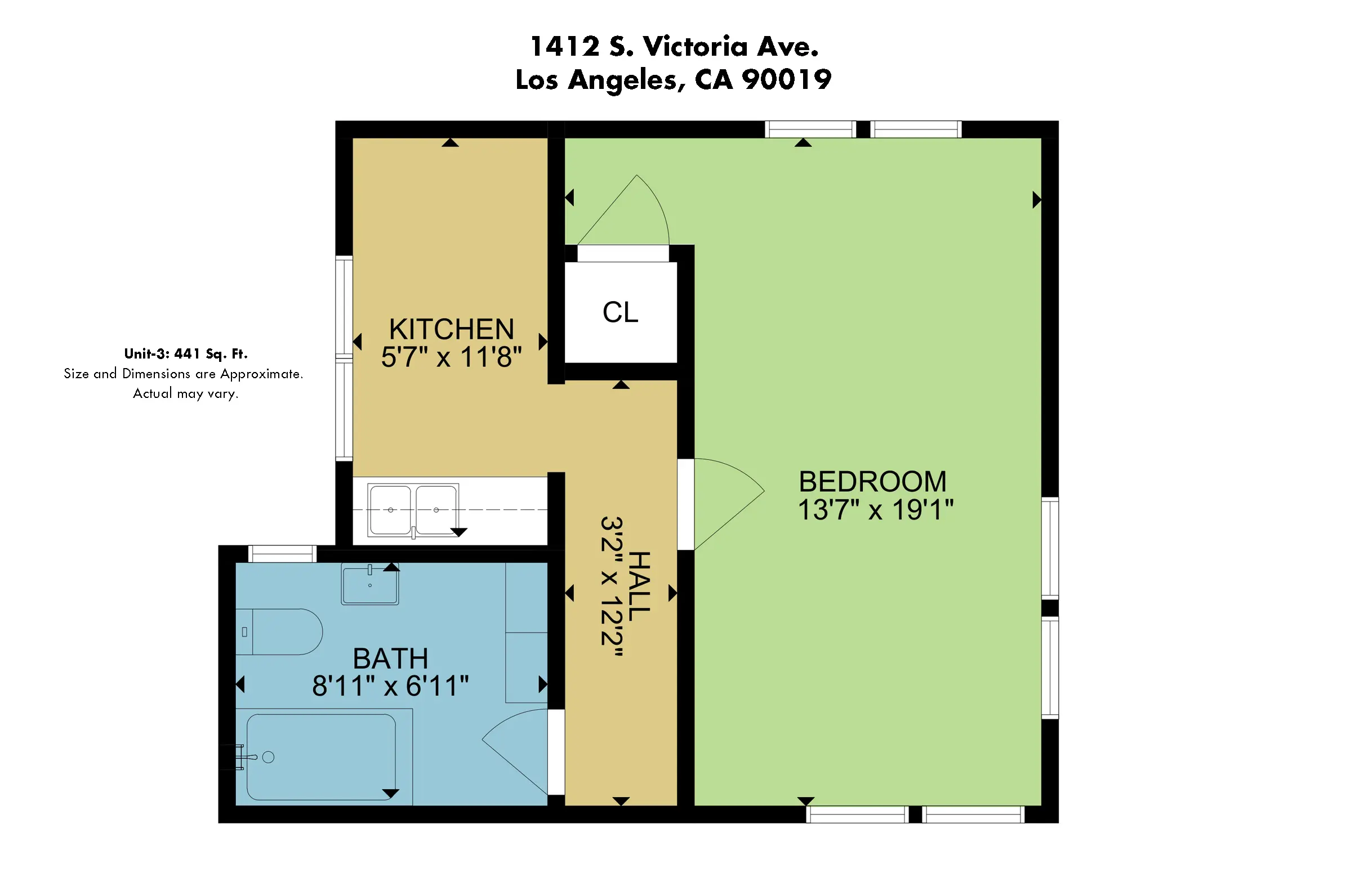 Unit #3 Upstairs back unit is 1-bedroom and 1-bath is approximately 441 square feet.